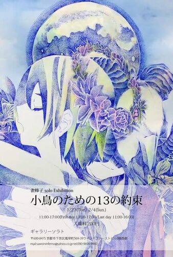 「雀蜂子 solo Exhibition 小鳥のための13の約束」 2024年1月23日(火)~2月4日(日)11:00~17:00(初日および火曜日のみ13時から営業/日曜日および最終日の観覧は16時まで)※月曜日定休 プレミアムスペースにて開催。 ★雀蜂子さんの個展です。 雀蜂子 <…
